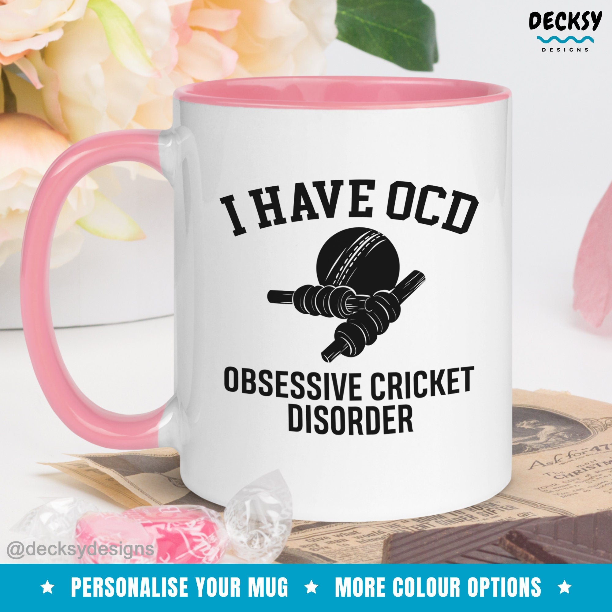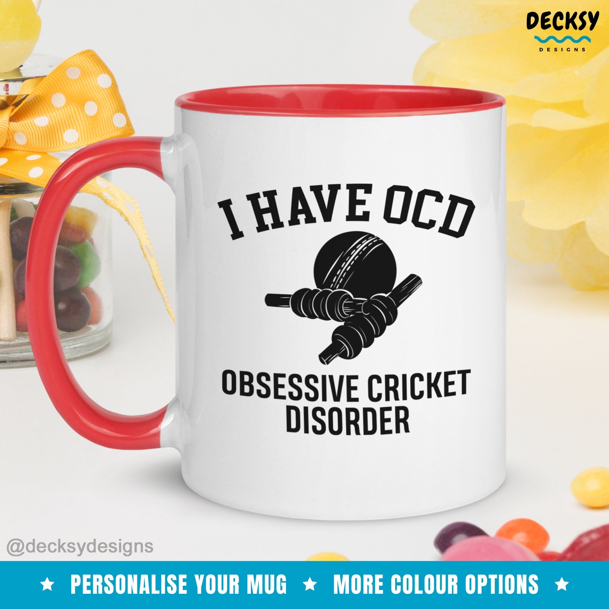 Indulge your love for cricket with our personalized Cricket Lover Mug. Perfect for cricket fans, this custom 11 Oz Accent Two-Toned Coffee Mug and 11 Oz and 15 Oz White Coffee Mug is the perfect gift. Embrace your Obsessive Cricket Disorder in style, sipping your favorite beverage from this unique mug.