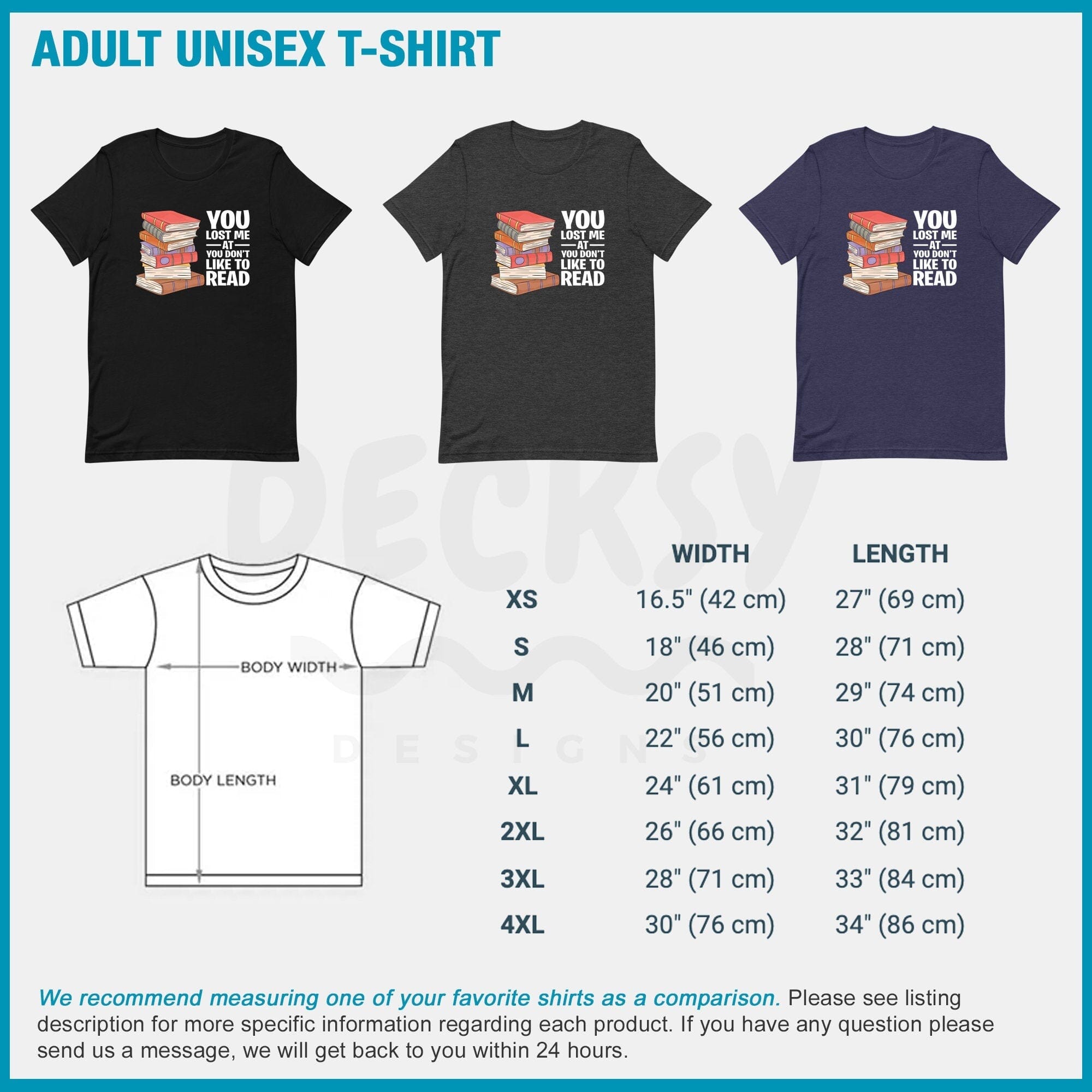 - Se non sei sicuro della tua taglia, ti consigliamo di misurare una delle tue magliette preferite come confronto.